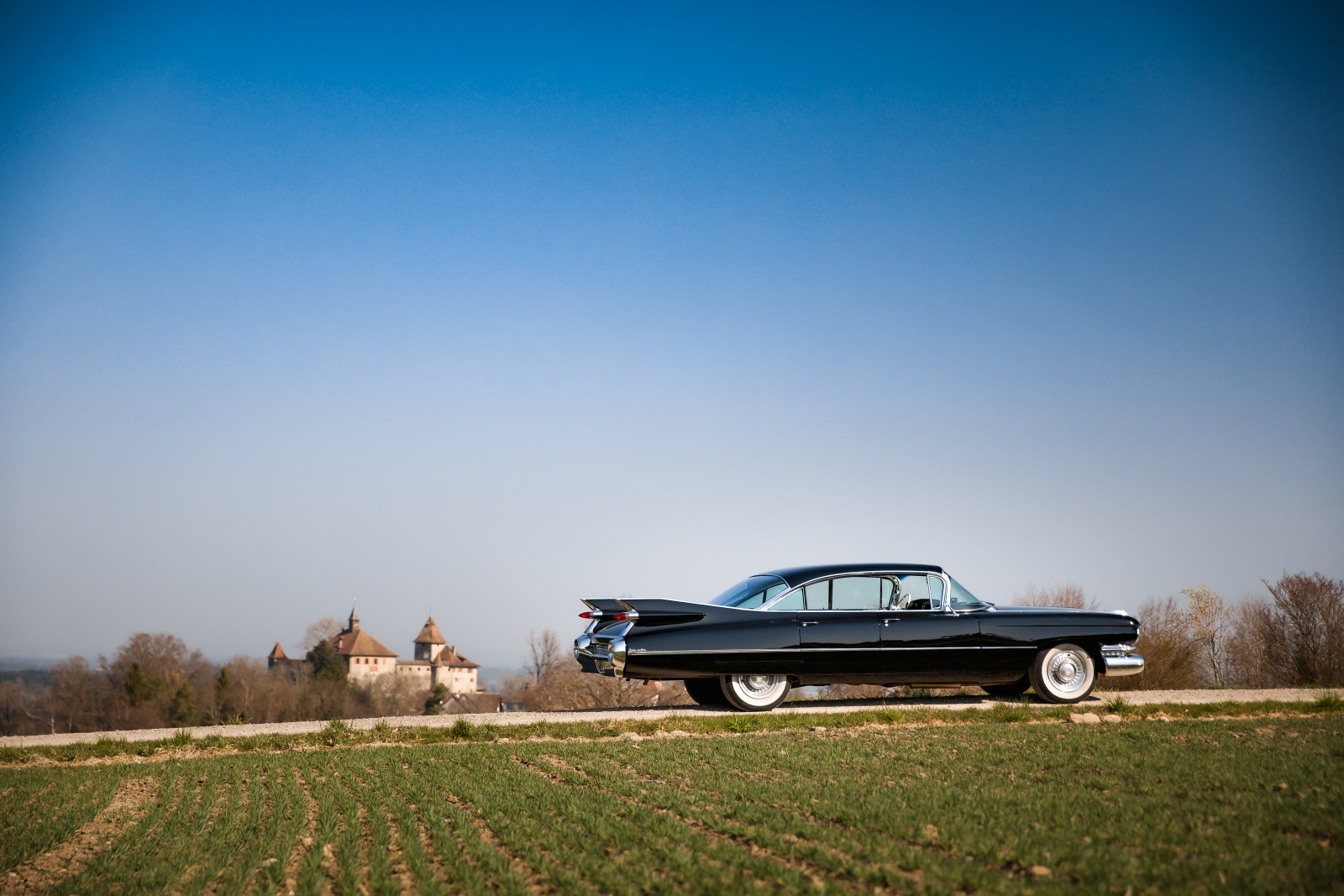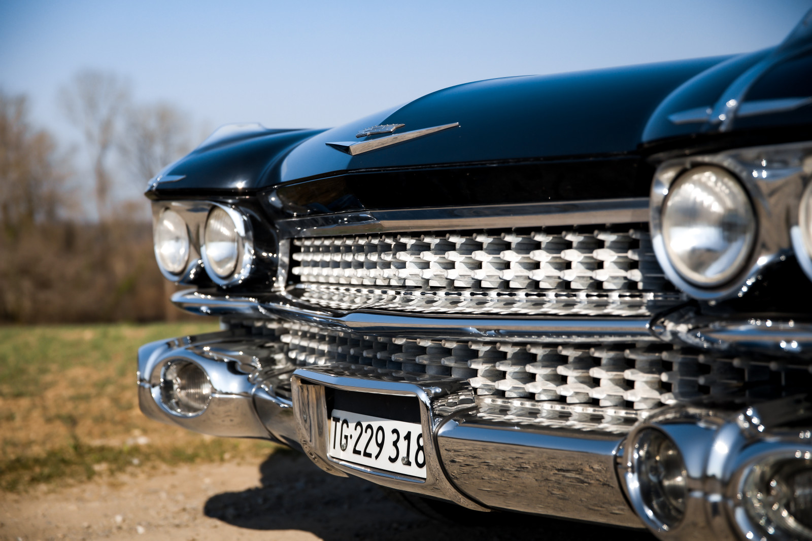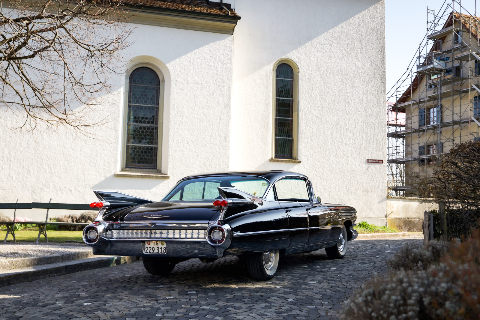 Space Age, USA, bald können Autos zum Mond fliegen: Dieser 1959er Cadillac DeVille mit den grössten Heckflossen und den nur in diesem einen Jahr gebauten "double rocket" Rückleuchten symbolisiert die späten Fünfziger- und frühen Sechzigerjahre wie kaum ein anderes Automobil. Fast sechs Meter lang, viel Chrom und ein V8-Sound zum niederknien