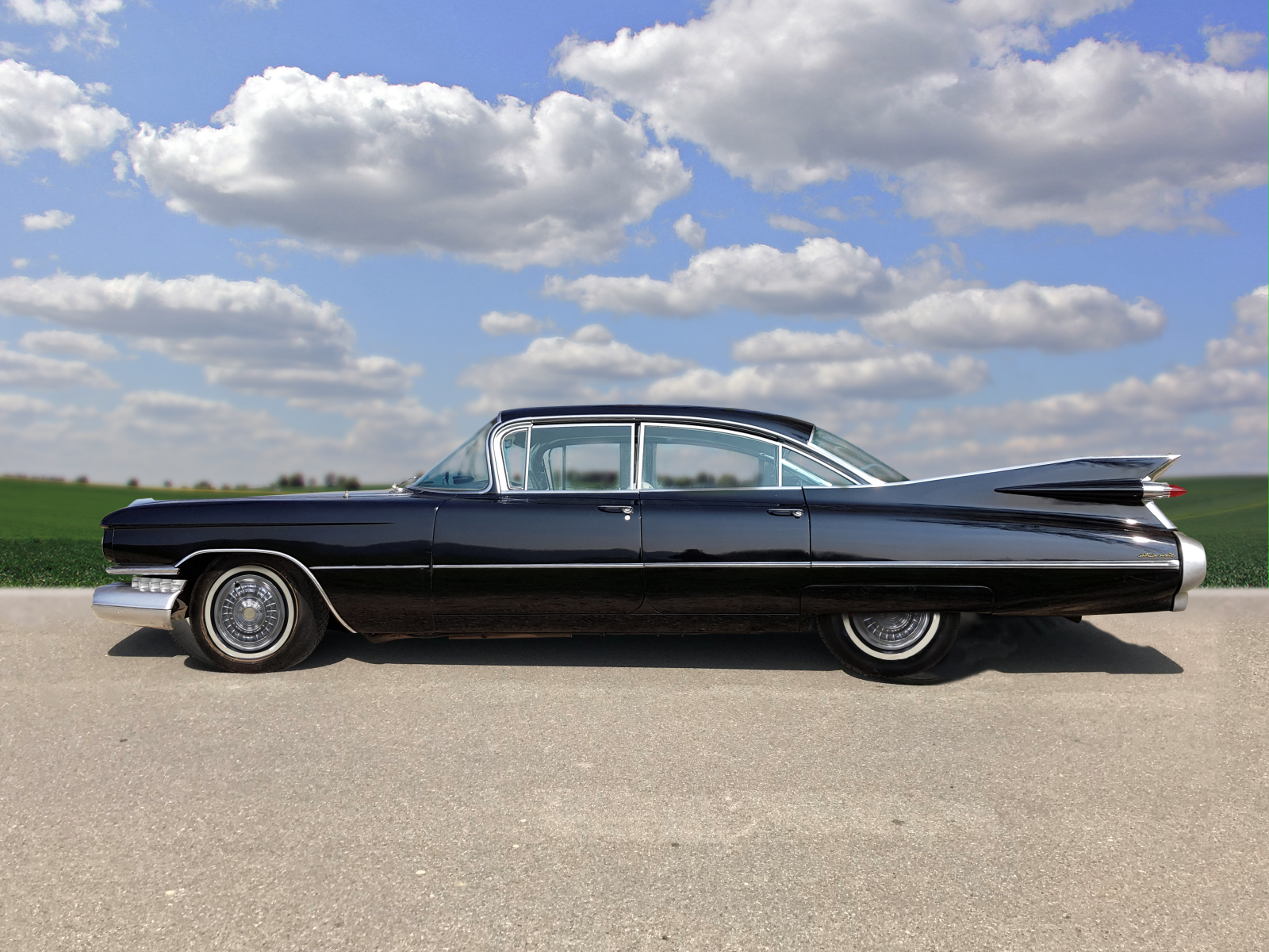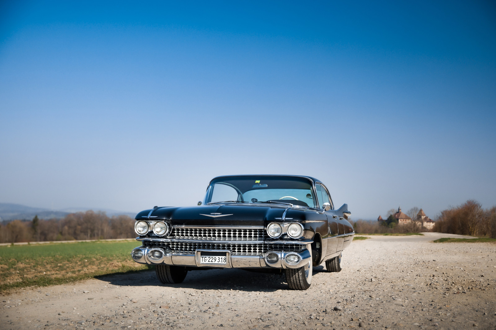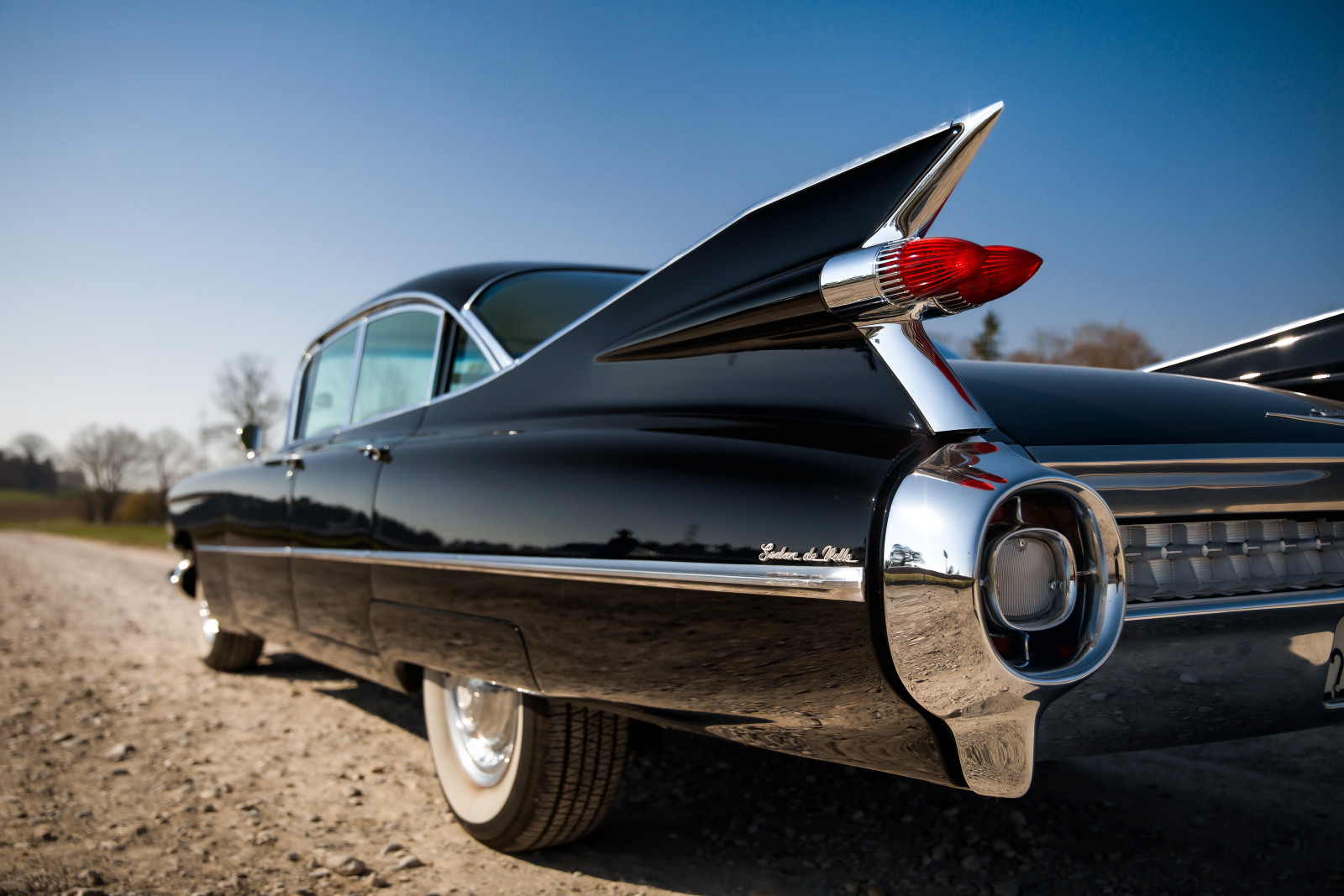 Space Age, USA, bald können Autos zum Mond fliegen: Dieser 1959er Cadillac DeVille mit den grössten Heckflossen und den nur in diesem einen Jahr gebauten "double rocket" Rückleuchten symbolisiert die späten Fünfziger- und frühen Sechzigerjahre wie kaum ein anderes Automobil. Fast sechs Meter lang, viel Chrom und ein V8-Sound zum niederknien