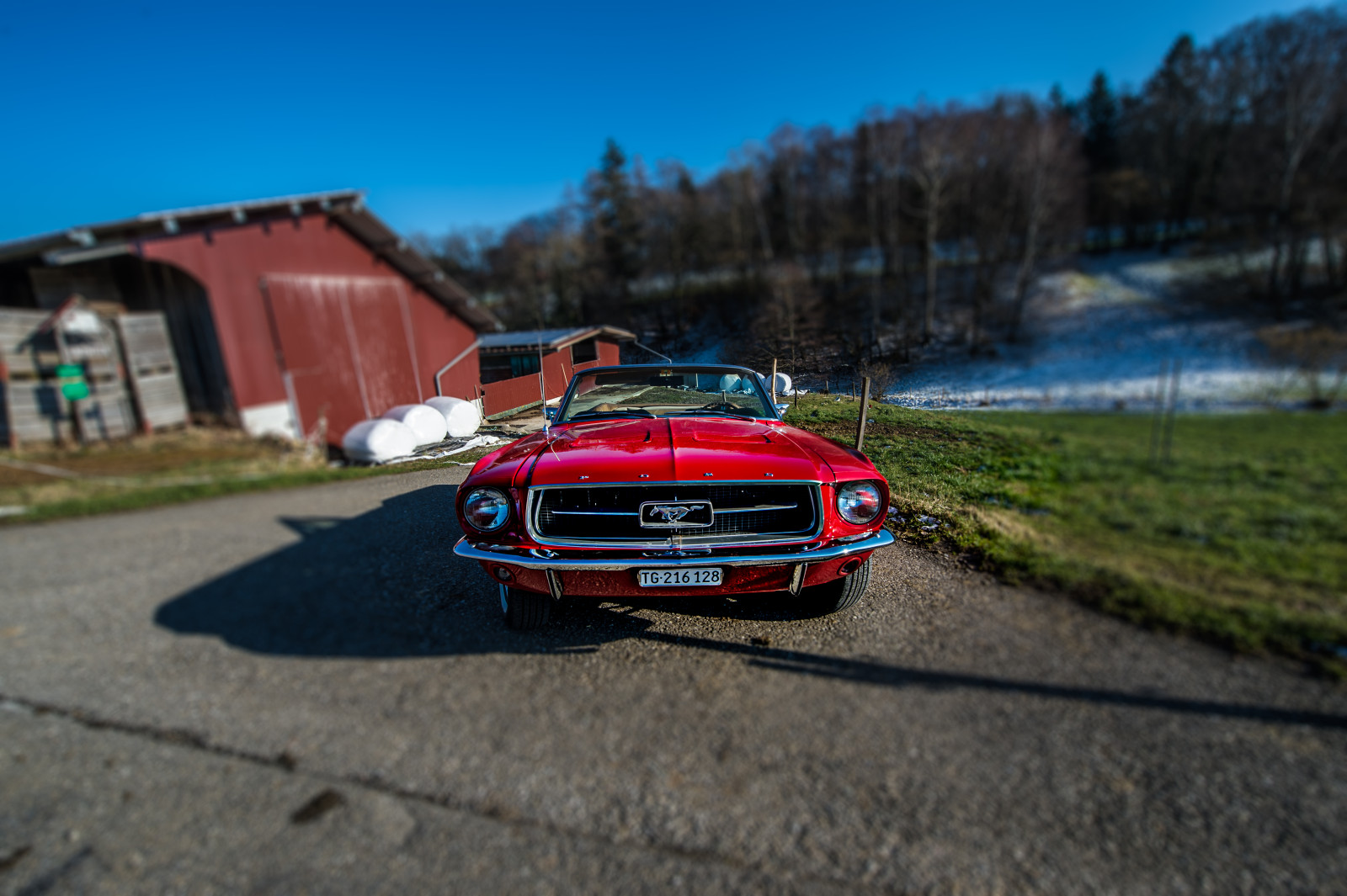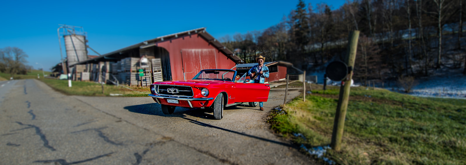DER klassische Ford Mustang in der herrlichen Farbkombination Rot/hellbraun und natürlich mit brabbelndem V8 Sound. Zur Zeit fährt der Mustang nicht mehr auf Weisswandreifen, da diese nicht lieferbar sind in der nötigen Dimension und Qualität. Der Fahrspass bleibt aber derselbe!