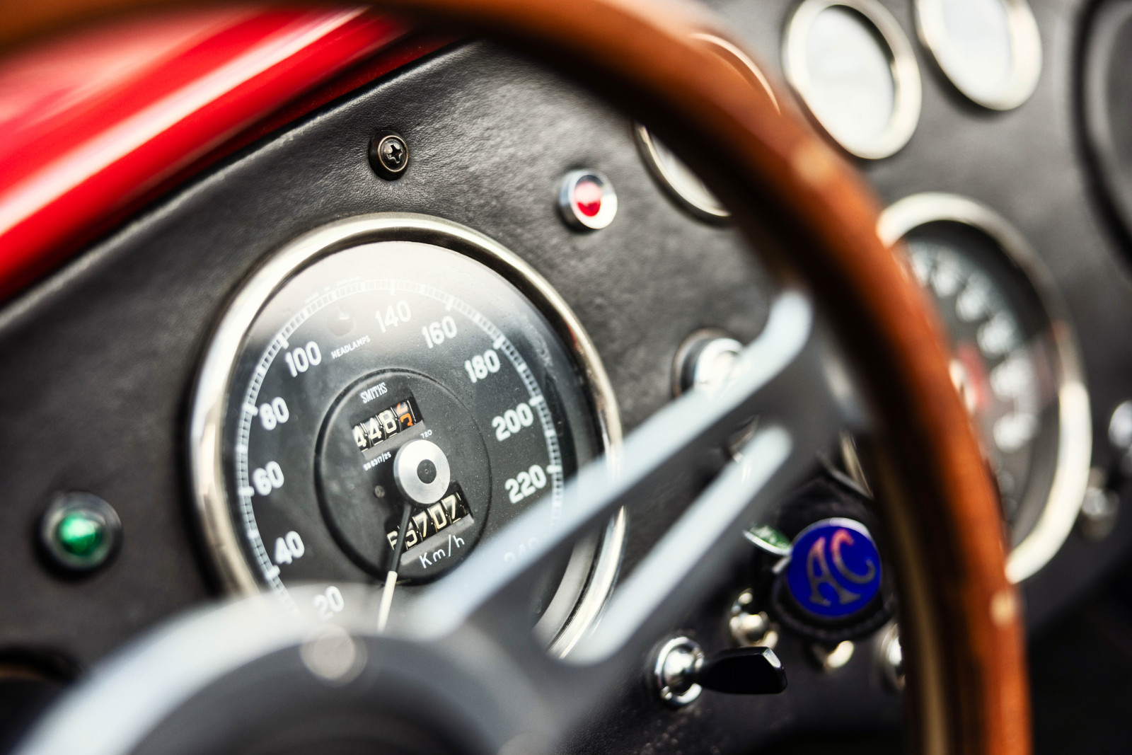 For purists: there is no 427 Ford under that fantastic bonnet, instead a sturdy Rover V8 with a twohundredsome of those indispencable horses does a brilliant job.